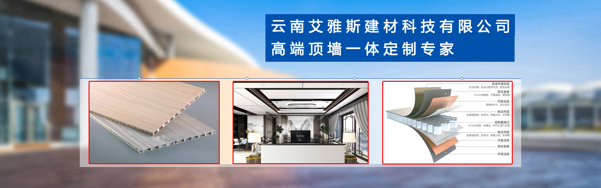 高端頂墻一體定制專家——云南艾雅斯建材科技有限公司,位于昆明經(jīng)開區(qū)小石壩社區(qū)白水塘上村36號,專注于鋁蜂窩大板,配套鋁型材,集成墻板,無主燈,照明系列的設(shè)計、生產(chǎn)、銷售、安裝于一體的高端頂墻定制專家,是一家具有多年生產(chǎn)研發(fā)及完整銷售管理經(jīng)驗(yàn)的公司,艾雅斯鋁蜂窩板全新視覺觀感,高端大氣,風(fēng)格百變,隨心設(shè)計! 云南艾雅斯建材生產(chǎn)的鋁蜂窩板、鋁型材、集成墻板深受廣大消費(fèi)者所喜愛,具有環(huán)保無醛,防水防潮,隔音隔熱,高強(qiáng)度,抗沖擊,不易變形,堅固牢靠等特點(diǎn),廣泛應(yīng)用到各行各業(yè),成為全國各地的加工廠、批發(fā)商一站式的供應(yīng)商,備受好評。云南艾雅斯建材科技有限公司嚴(yán)格執(zhí)行售前、售中、售后,全方位的合作形式,我們堅持以產(chǎn)品質(zhì)量為中心,以客戶需求為理念,為廣大加工廠,批發(fā)商提供優(yōu)質(zhì)的產(chǎn)品與服務(wù)。了解更多